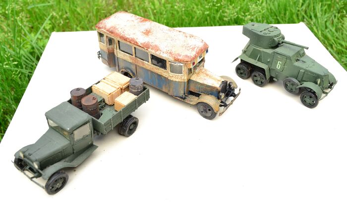 Для того чтоб вместить в один кадр пришлось размещать в гараже ( так что за второй план не кидайте тапками). И так начнем. На фото техника периода второй мировой. Танки, самоходки, бронетранспортеры, грузовики, бронеавтомобили, штабные автомобили, артиллерия, мотоциклы. СССР, Британии, США, Германии, Чехии. В самом начале в детстве, были просто солдатики из пластилина, нужно было делать для них технику (для более интересного игрового процесса)стала появляться техника к этим солдатикам, совершенствоваться технология, игры ушли, а интерес к самому процессу изготовления перерос в хобби. На вопрос почему не купить готовые наборы? Не люблю пластмассу. Не мое(хотя коллег по цеху моделизма очень ценю и многое черпаю от их опыта). Все что вы в этом посте видите выполнено в масштабе 1:43.