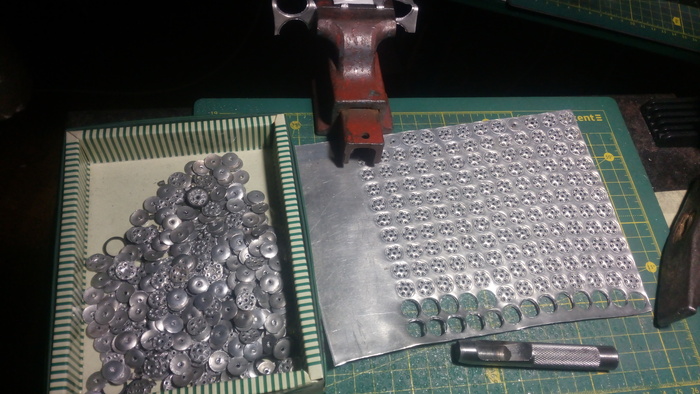 Самый трудный этап, это изготовление ходовой(гусеницы+катки). На фото ниже процесс изготовления опорных катков танка Pz III. Видно пробойник которым выпекаются заготовки. ( открываю секреты технологий)