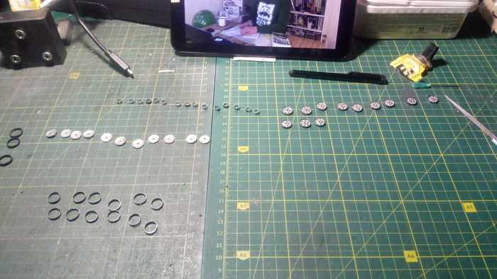 Мне не интересно делать по штучно, от сюда вся суть и особенность моей коллекции, подобия конвейера, подбираю технологию и инструмент исходя из задачи. Пример на фото ниже задний каток танка Pz III. Я стараюсь найти баланс между моими возможностями (яж не фабрика, по этому всегда будут изъяны) и желанием получить в итоге.