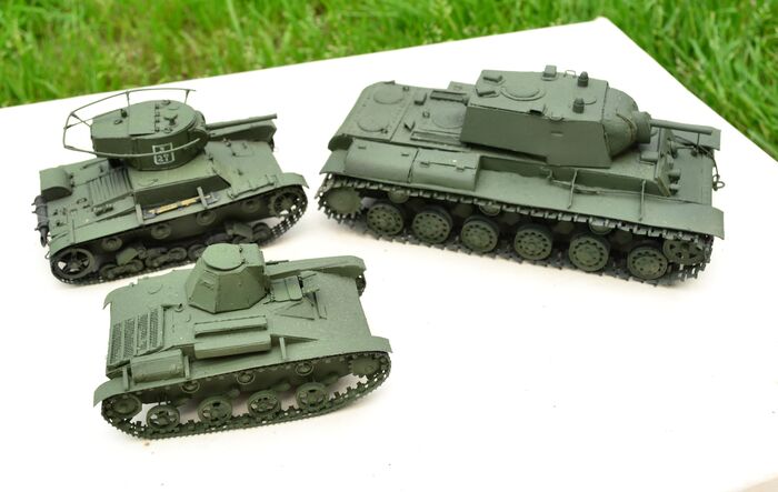 Тяжёлый танк КВ и рядом лёгкие танки Т 26 и Т 60 СССР.