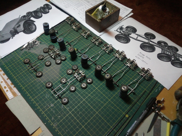 если на танке используется бандаж на катках, стараюсь это реализовать в своих моделях (по мере сил). На фото ниже процесс сборки опорных катков Pz III