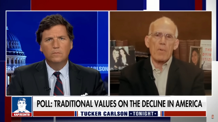 - Краткосрочный спад с 2019-го, где люди выражают неуверенность - в экономике, в своём будущем, в том, будут ли их дети жить лучше - думаю, в значительной степени объясняется тремя факторами. Катастрофа трёх лет ковидных локдаунов - а это была катастрофа! 120 дней беспорядков после гибели Джорджа Флойда. Разрушение экономики Байденом. Но вас интересуют долгосрочные тренды. Я думаю, что тут сказывается тот факт, что у нас, во-первых, 50 млн человек, столько никогда ещё не было, которые родились не в США! Нам не удалось их ассимилировать и интегрировать. Это первое. А во-вторых, все наши институты контролируются устойчивой глобалистской элитой, которая вдалбливает молодёжи в академических кругах и школах, что они, видите ли, граждане мира, и что границы не важны. Нет ничего исключительного или уникального в Америке. С этим посылом они вырастают. Они ничего не знают о Геттисберге, о звёздно-полосатом знамени, о Томасе Эдисоне, и так далее. Это шокирует. И есть ещё один раскол, Такер. Независимые и республиканцы, особенно в возрасте, отражают традиционные американские ценности религии, семьи, усердной работы, в отличие от демократов. И это, что важно помнить, не та же демократическая партия США, что породила Кеннеди или даже Билла Клинтона. Это радикальная левая партия с идеей утопического глобализма. И она говорит молодёжи Америки, что за благосостоянием и праздной жизнью, которые они считают естественными, ничего не стоит! Им не нужно ни вкладываться в страну, ни любить её, ни усердно работать, ни воспитывать гражданскую ответственность и ответственный патриотизм. Они думают, это всё - их по праву рождения. То есть это - оторванные от реальности, зажиточные от рождения праздные люди, понятия не имеющие о том, откуда это всё взялось и не испытывающие признательности к своим предкам, что дали им это.