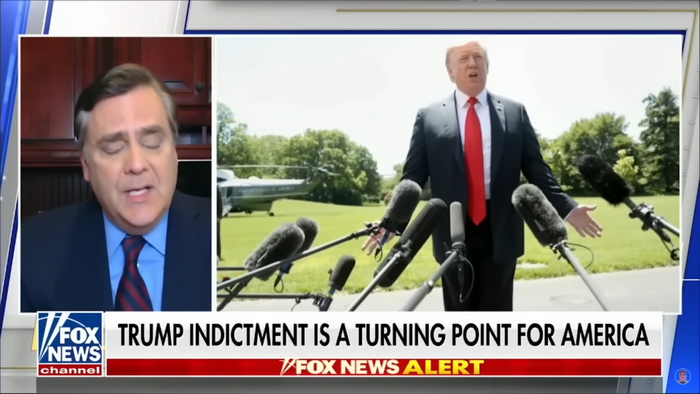 Далее у нас будет ещё по Десантису, но, Такер, важно помнить, что окружной прокурор Манхеттена, Элвин Брэгг, решил взять дело, которое было расследовано и отменено двумя предыдущими прокурорами, так как, как мы знаем, во-первых, дело громкое и политическое, и, во-вторых, дело предполагает широкое использование теоретизирования. Даже сам Элвин Брэгг изначально решил не возбуждать дело по Трампу. Дело, Такер, крутится вокруг платы в 130 тысяч долларов порнозвезде Сторми Дэниэлс, заявлявшей, что у неё были отношения с Трампом. Прокурор Элвин Брэгг не может возбудить административное дело, так как сроки давности истекли в 2018-м году. И для того, чтобы возбудить уголовное дело, манхеттенскому прокурору пришлось законодательно извернуться и объявить, что это было нарушение финансирования компании - пойти этим путём. Многие эксперты и юристы указали, что будет титанически сложно доказать, что Дональд Трамп заплатил Сторми Дэниэлс для того, чтобы победить на выборах, а не для того, чтобы, скажем, сохранить свой брак, и так далее. Вот недавняя оценка обвинения от профессора Джонатана Турли, смотрите.