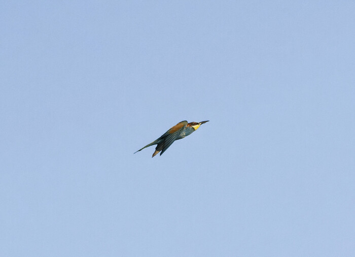 Золотистые щурки окончательно и бесповоротно покинули свою колонию. И теперь до самого своего отлёта будут кочевать в воздусях.