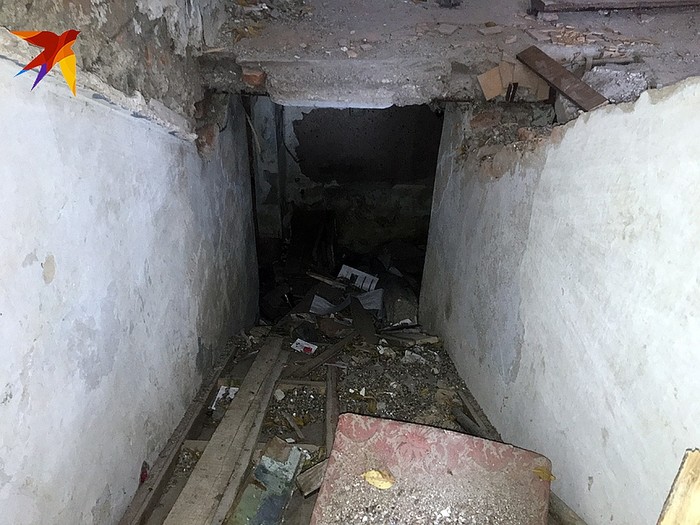 Спускаюсь по наклонной поверхности в подвал: кто-то положил в пролет старый диван, и, держась за стены, я не рискую переломать ноги.