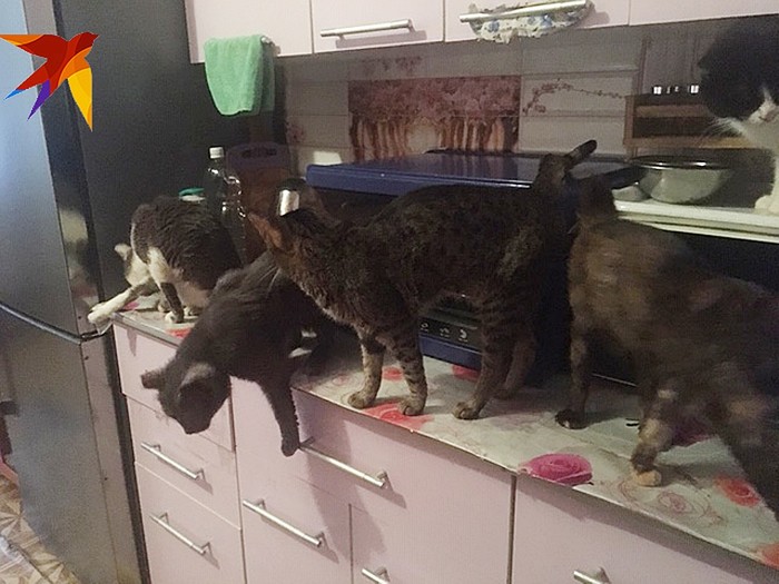 Да, вот так запах сбивает с ног. Животные ходят в лоток, но их столько, что сосчитать невозможно, сидят на всех поверхностях и взмяркивают, а хозяйка только что вернулась из ветеринарки. Чистит невообразимую вонючку два раза в день, что явно недостаточно.