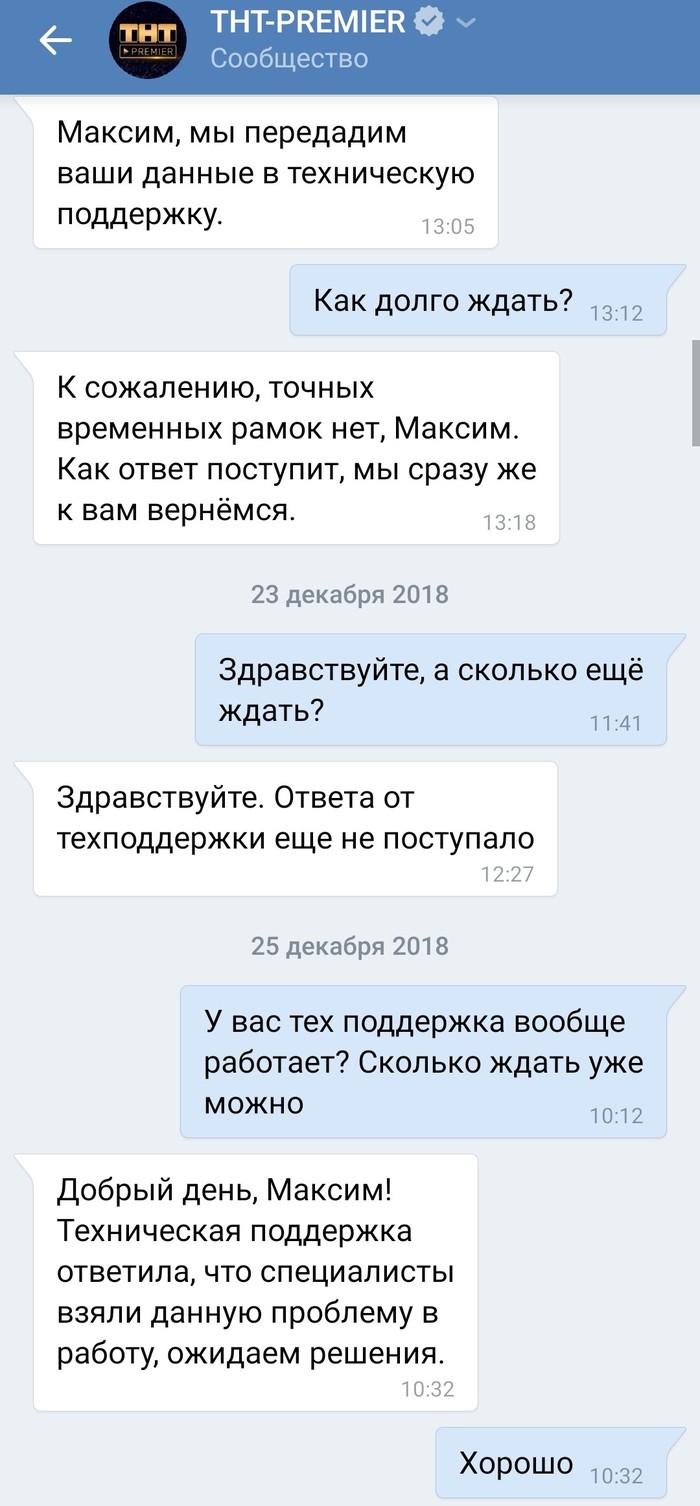Это было уже 31 декабря, параллельно пишу им в ВК. Сам причем, никто мне ничего не писал.