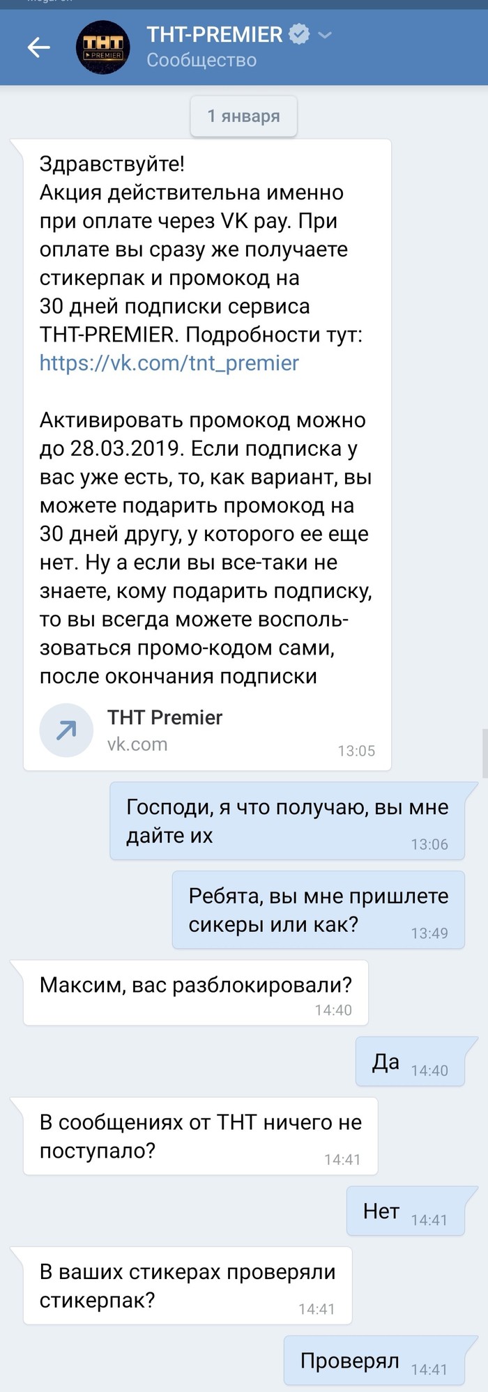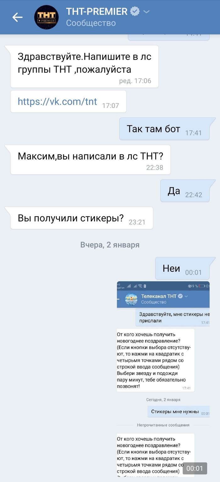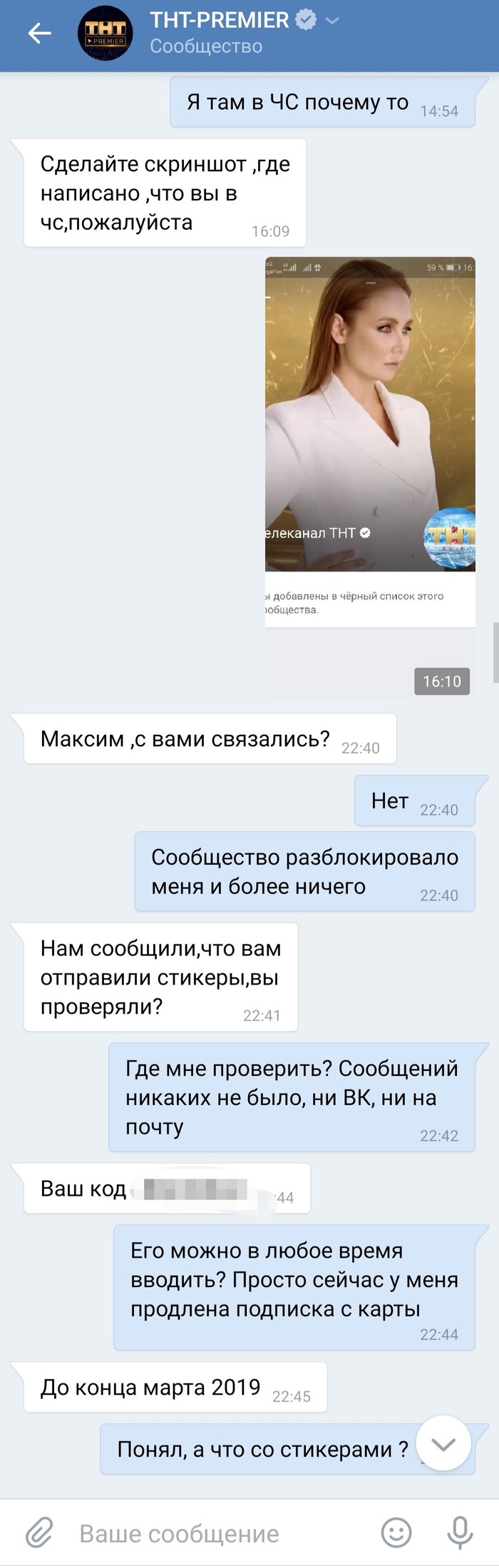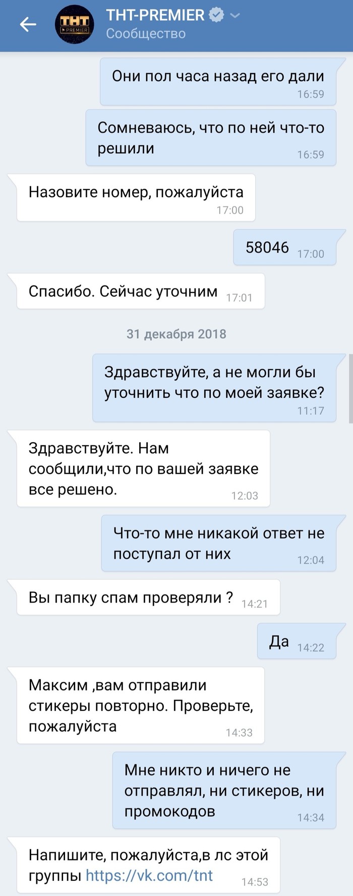 С этого началась моя борьба с ними. Мне должны были прислать промо-код на просмотр ТНТ и стикеры.