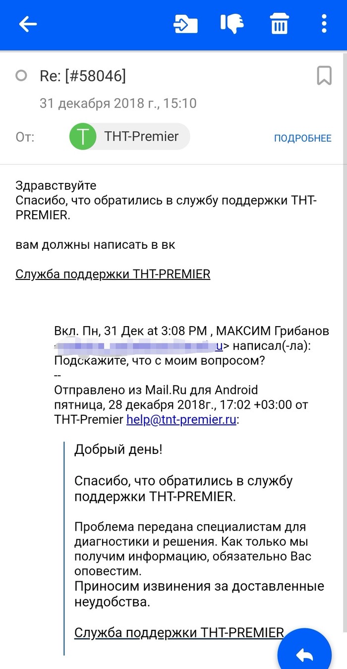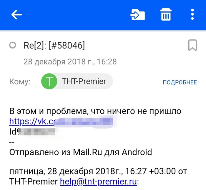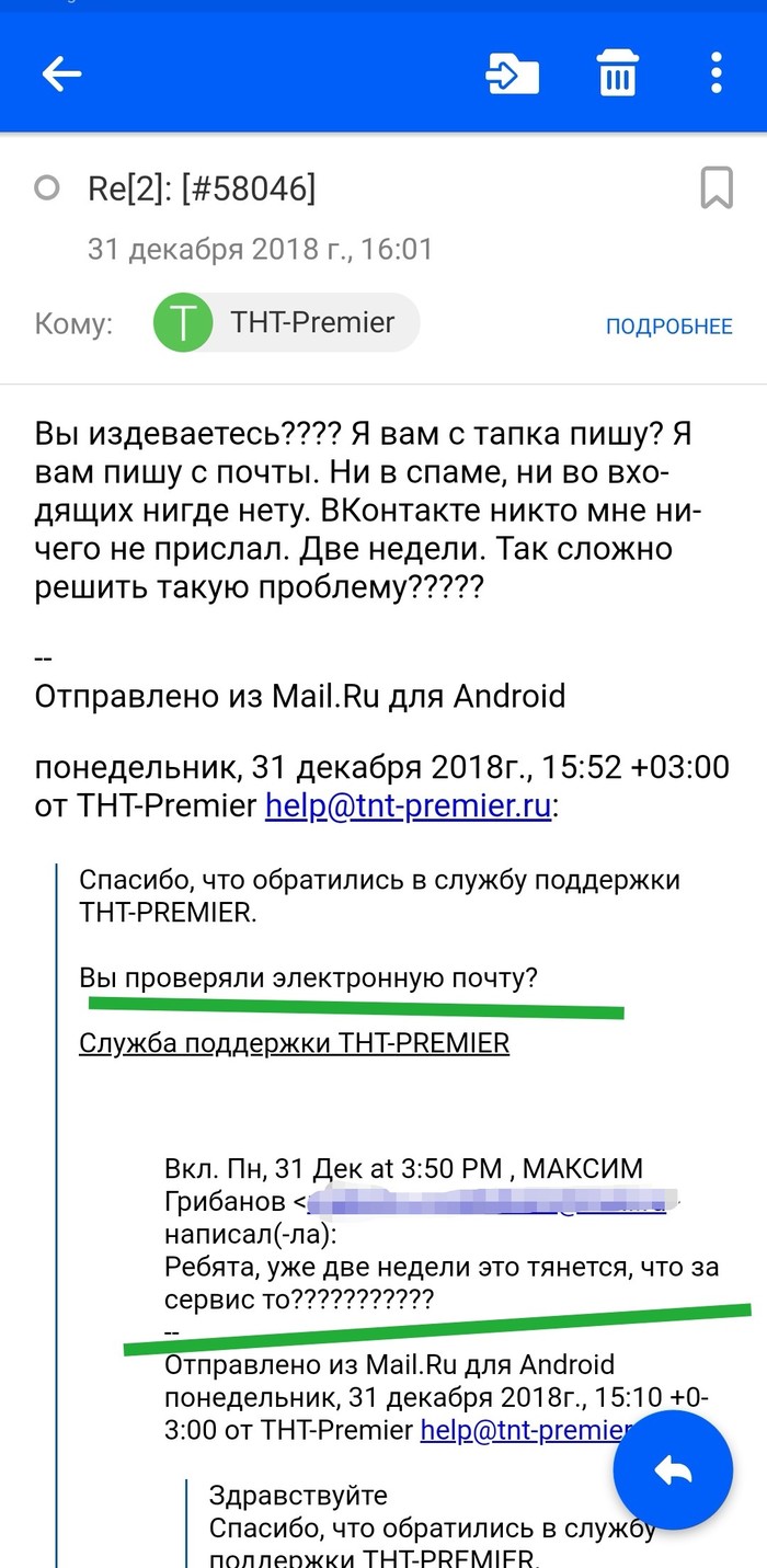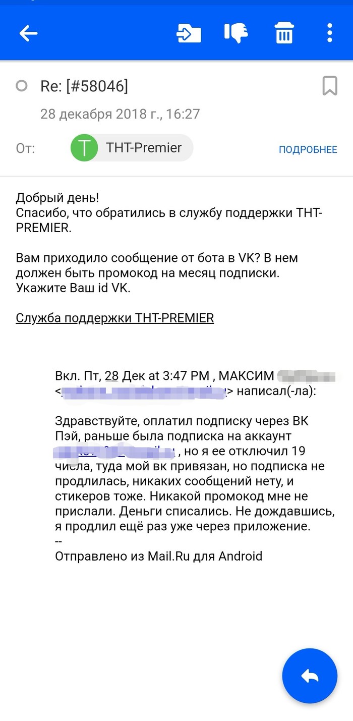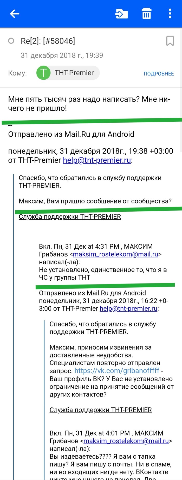 С этого началась моя борьба с ними. Мне должны были прислать промо-код на просмотр ТНТ и стикеры.