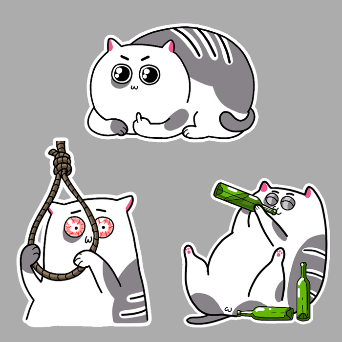Не так давно я решилась на создание своего стикерпака. Героем стала чайка Чая. Стикеры делала принципиально НЕ векторные, так как кругом полно идеально прорисованных работ. Такой намеренно-небрежный авторский стиль) Как уже писала одна девушка на Пикабу - предлагать стикеры в вк - дело дохлое, поэтому я залила пак в телеграм. Пак скачивали, но что-то мне подсказывало, что чайка - изначально не самое популярное живое существо...И тут я решила попробовать отрисовать самое популярное существо - конечно, КОТИКОВ! И что вы думаете? Небо и земля! Почему котики не изживают свою популярность? Казалось бы, заезженная тема, но нет! Скачивания котяры несопоставимо выше чем у Чаи... Вообщем, птицу забросила и стала развивать кота. Ну а что, народ требует четырехлапых... К удивлению своему, обнаружила - хоть котов нарисовано великое множество - всегда есть место еще для одной идеи...