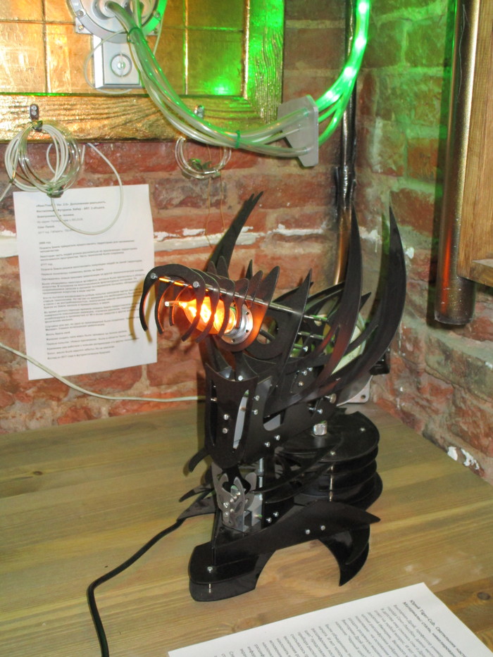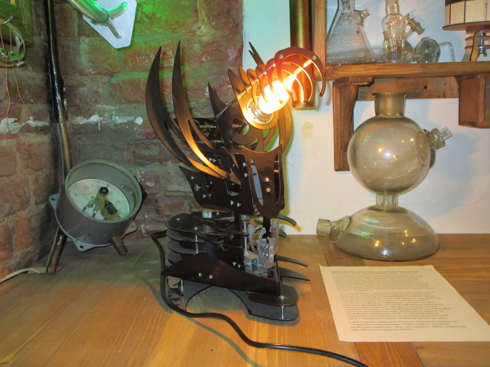 Собрал себе в подарок на 2017 год такой светильник. Материалы: сталь, никелированная латунь, алюминий. Сначала проект собирал в 3D. Светильник (вторая версия) экспонировался на выставке "Стимпанк или ПАРаллельная реальность" проходившей в Санкт-Петербурге в 2017-18 годах.