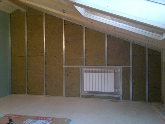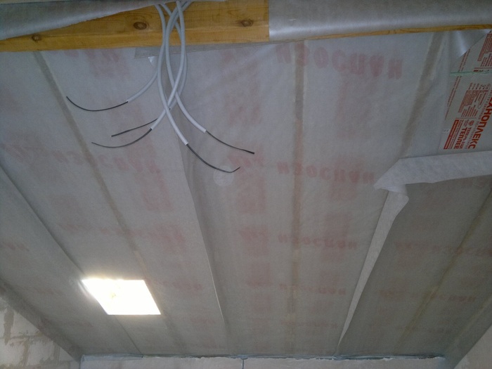 Соседи были шумные, слышно было каждый чих, поэтому и зашили стены с укладкой шумоизоляции, сверху легли пароизоляция и ГКЛ