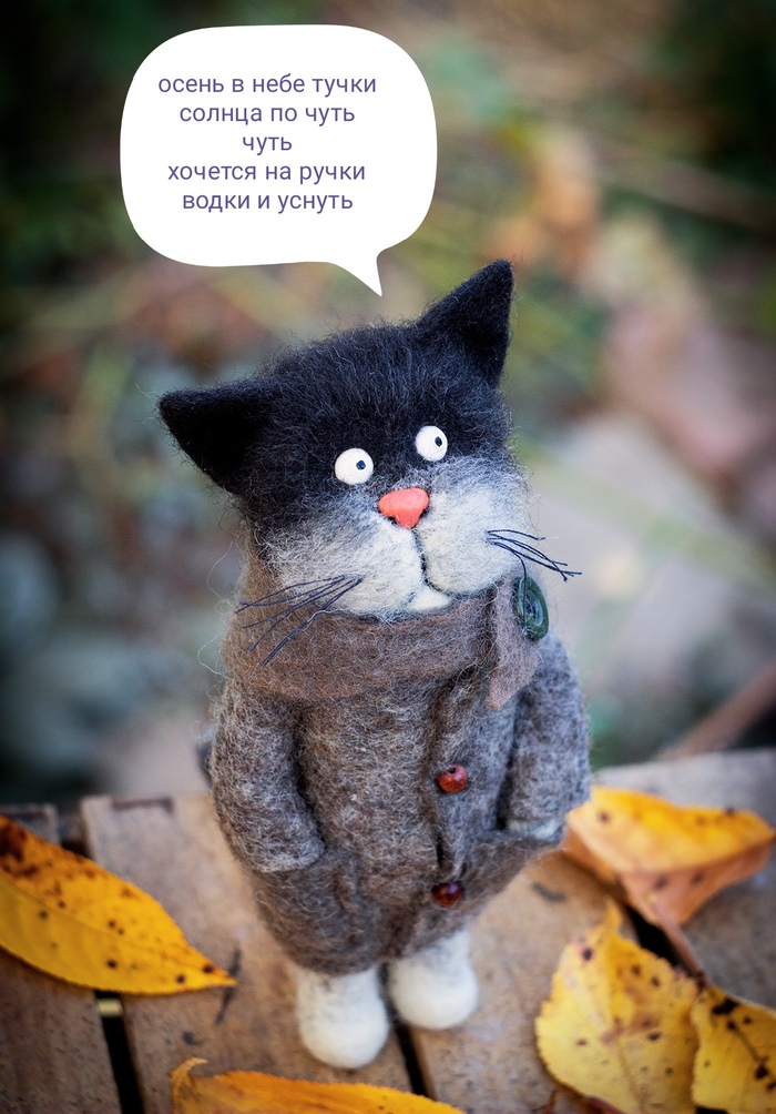 Котэ мой,собственноручно из шерсти сваляный,а чудные строки стиха-депресяшки найдены на просторах сети(автора незнаю)