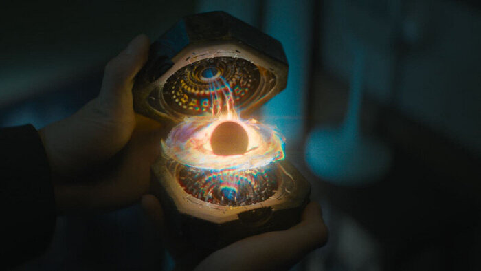 В фильме есть пират Глот, обладавший умением "переигрывать настоящее". Да, как мимики в "Грани будущего": проиграли бой - тут же откатили время до контрольной точки, нажали клавишу "продолжить" и пошли играть заново уже по знакомым локациям и зная все ходы противника. Маховиком времени в этом фильме служит тот самый тессеракт (в фильме он носит невзрачное название "космион" и похож на ту фигнюшку из первых "Стражей Галактики", только цвет не фиолетовый, а оранжевый).