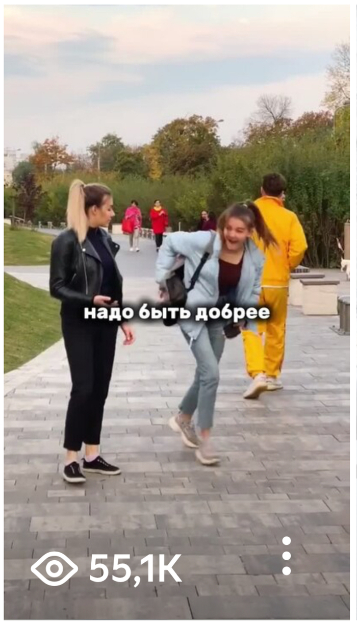 Основные форматов было два: нарезки кадров под ритм трека или фото с двумя вариантами подписи: