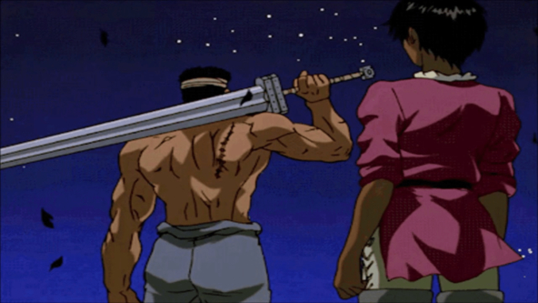 Разработчики хотели сделать из Клауда такого типа Гатса из "Берсерка" (о чём свидетельствует хотя бы огромный меч у Клауда и что Клауд тоже является наёмником), но вот в чём проблема... Гатс был молчалив, да. Но он был брутальным и каждое его слово или фраза была чётко в цель и по делу, а голос был настойчив и уверенным, что дополнительные слова были излишни.