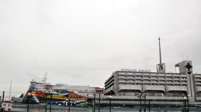 Санкт-Петербург встретил нас слегка накрапывающим дождиком и дикой очередью на посадку в метро и битком набитыми вагонами. Еле влезли, еле вылезли, с сумками мы были там явно лишние и сильно мешающие. Может поэтому вышли на одну станцию раньше, чем надо было. Чтобы попасть на старый мор. вокзал нам надо было метро «Приморское», а мы вышли на «Василеостровская». Ну что то же должно ходить до мор. вокзала. Далеко ни сразу нашли одну маршрутку, приставая беспрерывно к людям и двигаясь по Среднему проспекту В.О. Нашли – маршрутка К-590 на углу 8-ой линии и Среднего проспекта, сели, доехали, вот он мор. вокзал.
