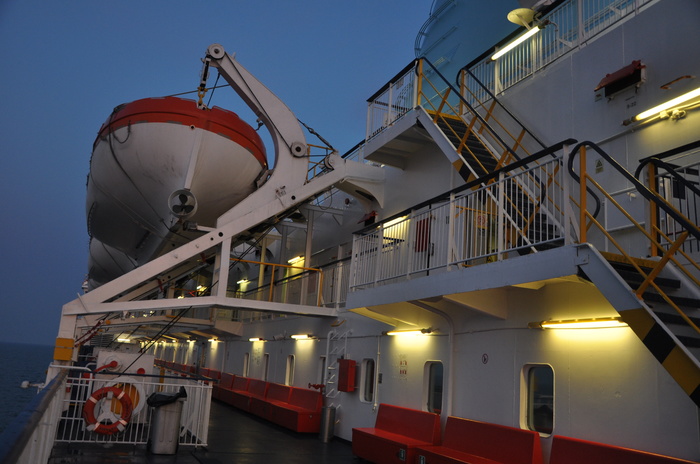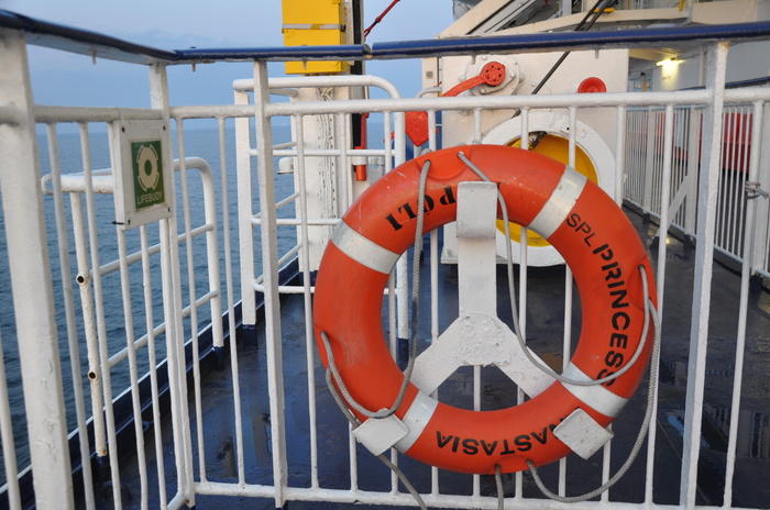 Нашли свою каюту, почти в самой корме. Разместились, прогулялись по судну и пошли на верхнюю палубу любоваться отходом парома от причала.