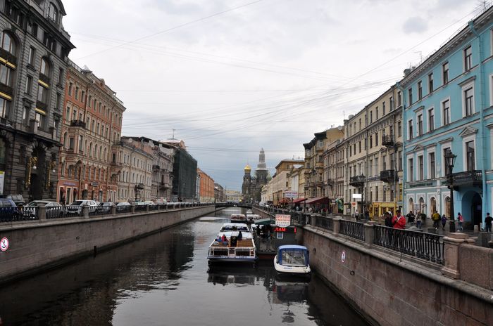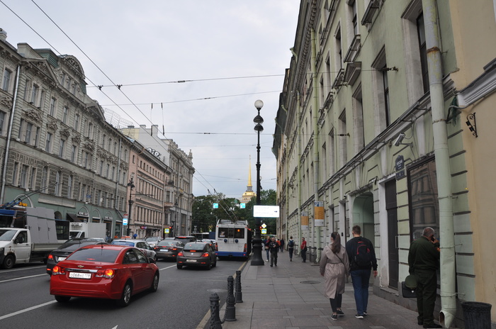 Пошли в него. С виду он такой уродец, а внутри ниче, современно. Сдали вещи в камеру хранения. Там она, кстати, автоматическая, оплата удобно по карте (250руб.), ячейки большие, наши сумки легко вошли. Разобрались когда и где регистрация на паром, заняли очередь и поехали в город. Нас подвезли до метро «Приморское», попили кофе и поехали в центр города. Таня была в Питере в детстве, ей был интересен Невский и Зимний, памятник Петру и остальные памятные всем места в Питере. Вышли на станции «Гостиный двор», это почти вначале Невского проспекта. Начали бродить туда-сюда, любоваться действительно прекрасным городом. Когда мы шли к Храму на крови, на Галину напал аниматор в форме жирафа и давай всяко с ней вставать в эффектные позы для фото, и когда мы пошли дальше стал трясти с нас денюжку, Таня дала ему сотку, он что-то пробурчал, но отстал. Потом мы аниматоров во всех городах мягко посылали работать дальше, но не с нами. Побродили ещё немного по Невскому и ближе к часу поехали на мор. вокзал прям с Невского на троллейбусе № 10, заодно и посмотреть город по дороге. Туда же с Невского идет и троллейбус № 11. То есть с Московского вокзала можно доехать без пересадок прям до мор. вокзала.