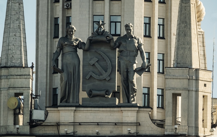 Главный вход на ВДНХ — это первое, что открывается перед посетителями, приходящими на выставку. Их встречает монументальная архитектурная композиция в виде внушительной арки с колоннадой, украшенной барельефами, и величественной скульптурой на вершине.