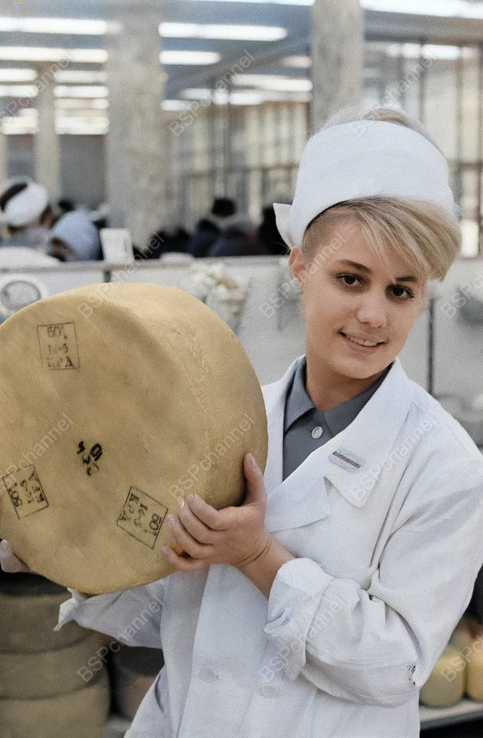 Г. Зотова, продавщица сырного отдела продуктового магазина «Новоарбатский». Москва, 1968 год.