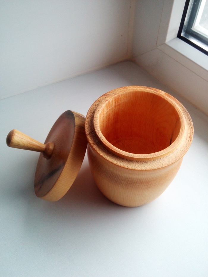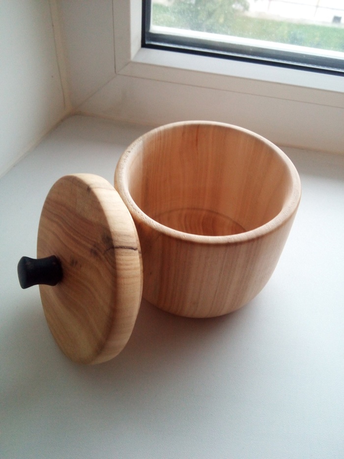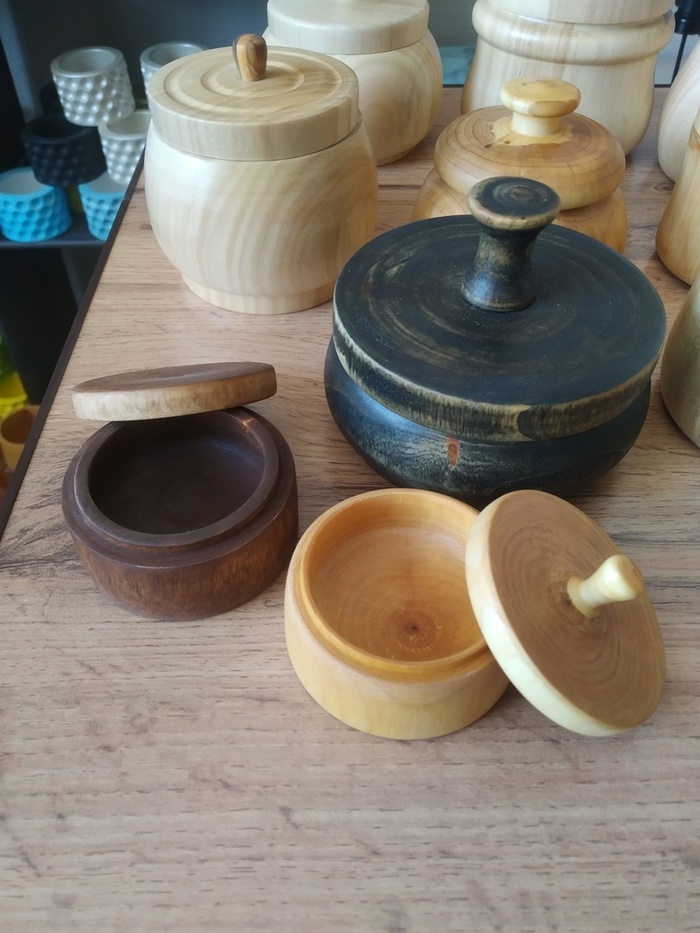 Разные формы, разное дерево, разное покрытие, но все с крышками и все безопасны при контакте с пищей :))