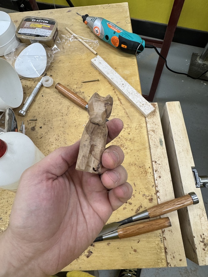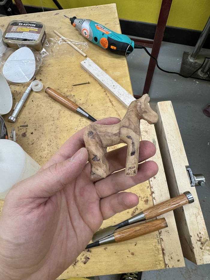 К слову, найти подходящий кусок дерева, заняло у меня больше времени, чем само изготовление фигурки. Обработка стамесками и прочными резцами заняла часа 1,5. Что описывать там я не знаю, да и работа шла так гладко, что я позабыл фотографировать и снимать. В конце покрыл бесцветным маслом для полов.