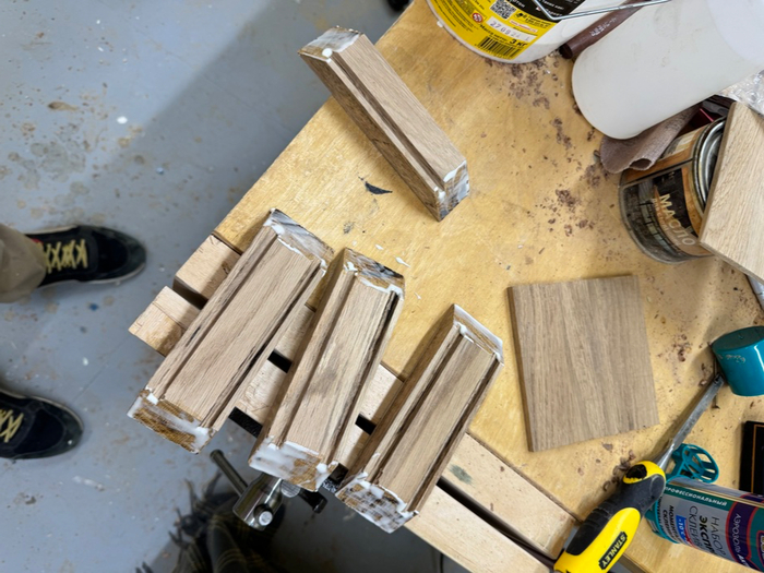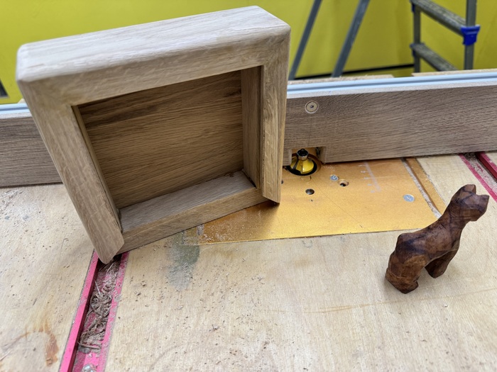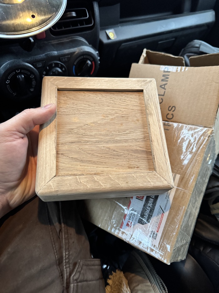 Порадовавшись результату я решил подумать над упаковкой. Из обрезков дуба сделал на скорую руку коробочку. Из упаковочного пенопласта от рейсмуса сделал подложку. И был у меня кусочек бархата. Тяп ляп вышло, конечно, но ведь это просто транспортировочная коробка! И все же мне кажется вид имеет.