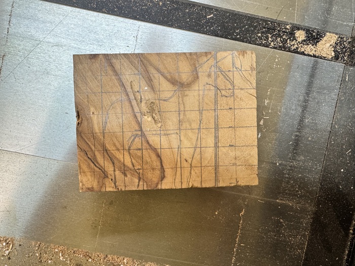 Но я справился, дальше нужно было перенести примерную форму на получившийся брусок. Чтобы минимизировать погрешность кривизны рук, пришлось прибегнуть к хитрости. Для этого я расчертил изображение и брусок на квадраты, и по кусочкам перенес. Остальное дело техники, а именно электролобзика.