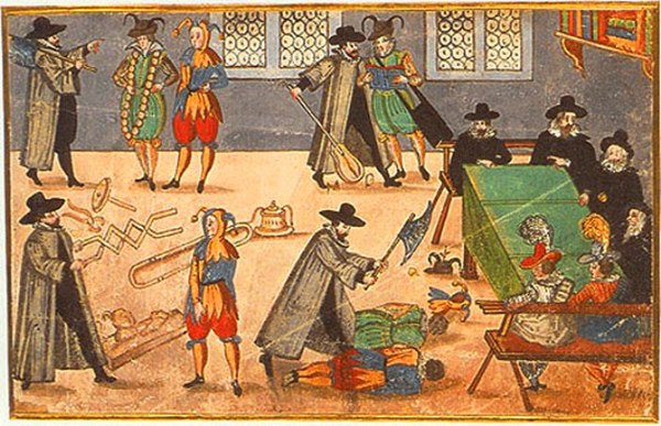 Ритуал инициации в студенты. Резьба по дереву, XVI в.