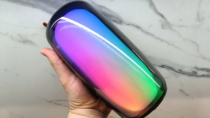 Очень яркая и привлекательная колонка с объемным качественным звуком. Необычный переливающийся дизайн лицевой части полусферы может работать в нескольких режимах или полностью выключается для экономии энергии. Эффектная подсветка, которая действительно притягивает взгляды. Управление с торца корпуса и каждая кнопка выделена крупной пиктограммой выполняемого действия. Удобно, но подсветки кнопок не предусмотрено. Внутри корпуса два больших 50,2 мм динамика на крупных магнитах и резиновых подвесах. Защищены пластиковой решеткой с акустической тканью. Между ними установлен 60 мм пассивный излучатель, добавляющий объема в звучание и низких частот. В целом, звук понравился, есть напор, объем и живые нотки, а не просто тусклое звучание из пластиковой коробки. Но изначально низких маловато, именно с ними я поработал в штатном эквалайзере плеера.