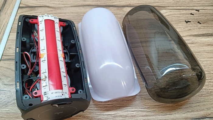 Вокруг динамиков можно увидеть 8 углублений с саморезами. Именно они удерживают внешнюю часть с подсветкой.