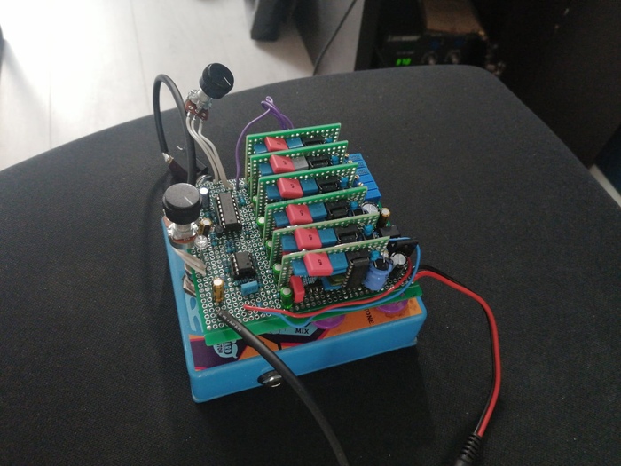 С каждого такого модуля сигнал идет в микшер, где замешивается с чистым сигналом, а так же на переключатели обратной связи, для создания более глубоких эффектов.