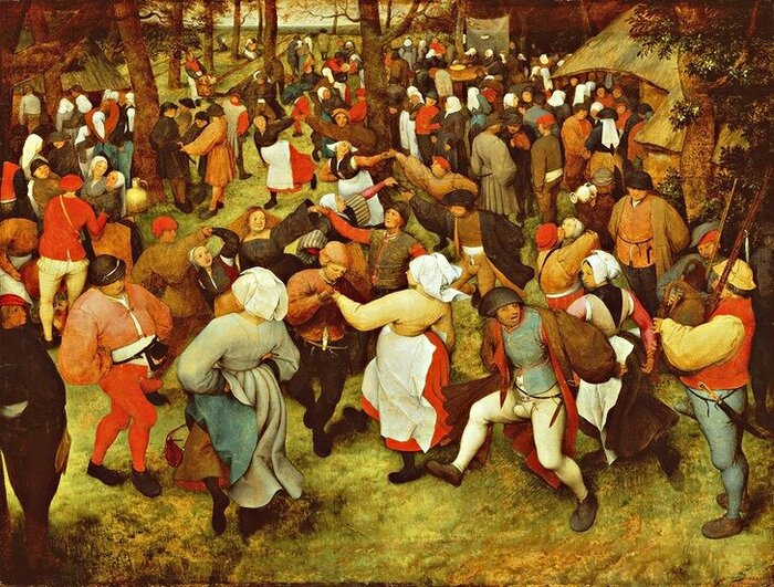 - Религиозный экстаз. Люди в те времена верили, что танец отпугнёт святого Витта – покровителя эпилептиков и танцоров. Что это, постметаирония времён Ренессанса? Похоже, святой и был зачинщиком этих танцев. Считалось, что если 15 июня станцевать перед изваянием этого святого, то можно было избавиться от всех болезней на целый год. Но в этом случае не бьются даты. Во время эпидемии 1518 года жители Страсбурга направились к часовне святого Витта в Саверну, где якобы проходило исцеление.