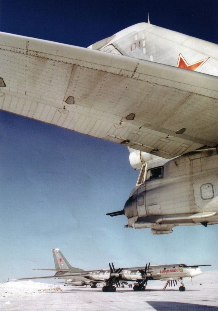Примечание. Описание конструкции самолёта дано применительно к семейству В — старым модификациям Ту-95М, КМ, РЦ и т. п. Эксплуатирующаяся в настоящее время модификация Ту-95МС (ВП-021) относится к семейству ВП (Ту-142) и в значительной степени отлична от снятых с вооружения предыдущих модификаций, так как самолёт создавался на базе противолодочного самолёта Ту-142М (ВПМ) и прототип носил название Ту-142МС. Планер и общесамолётные системы Ту-95МС во многом соответствуют противолодочной модели.