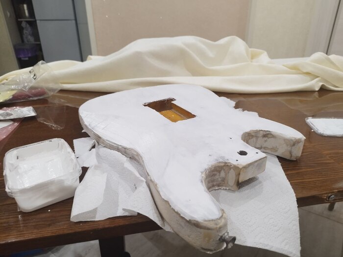Плюс всякая химия (грунты, краски, лаки, полироли) на сумму около 2000 рублей. Ну накинем ремень и пачку медиаторов еще рублей на 500.