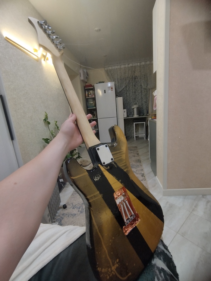 Лакирование было очень простым, но с моими навыками вышло очень небрежно: получились подтёки, пузырьки и неровности, но внешний вид гитары после лакирования был бомбезен