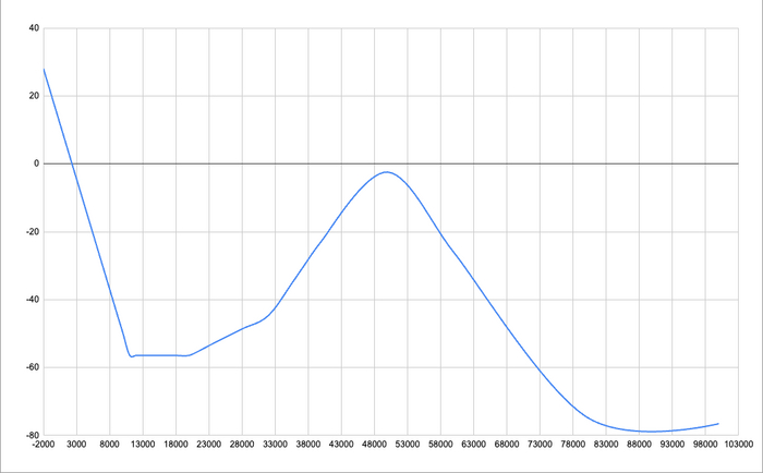 Мне кажется, корреляция очевидна. Нет, конечно мы не улетели на 50+ км - это абсурд. Давайте разбираться, что мы тут видим. Я пронумеровал сегменты полета для удобства: