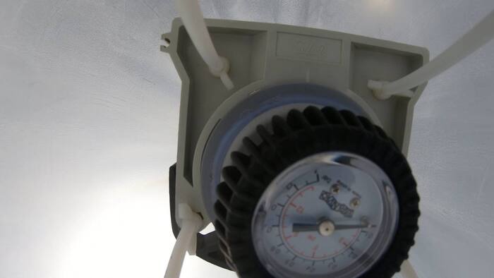 А чтобы что-то установить надо сначала понять - а какое оно там есть? Вот для этих целей и была создана конструкция на фотке сверху: манометр, подключаемый к горловине шара, камера для съемки показаний и котлетница для павербанка - питать камеру.