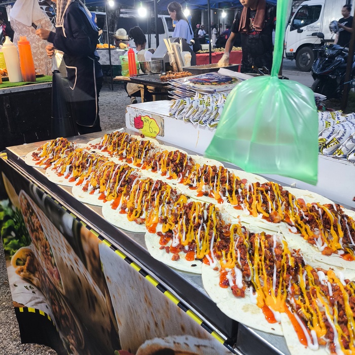 А когда все дела были сделаны, дошли до передвижного рынка с едой. Он работает только по четвергам и мы давно его ждали. Хотели посмотреть, чем он богат, и, надо сказать, он не разочаровал. Такое количество самых разнообразных уличных блюд по-настоящему завораживает! Мы набрали всякого на прилавках и, приложив недюжинное усилие, покинули территорию рынка.