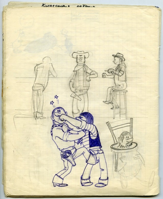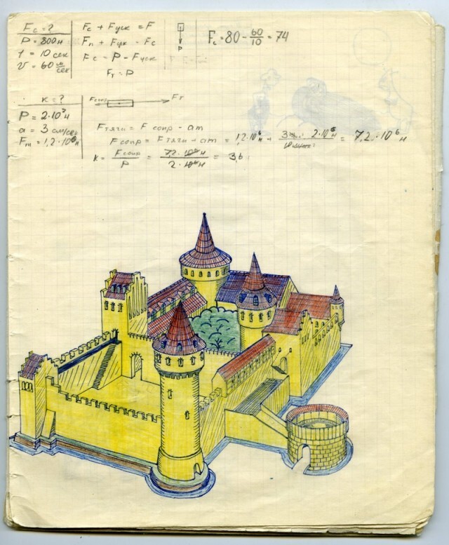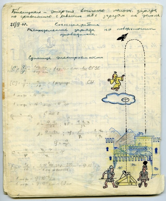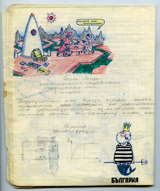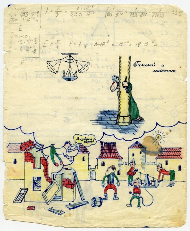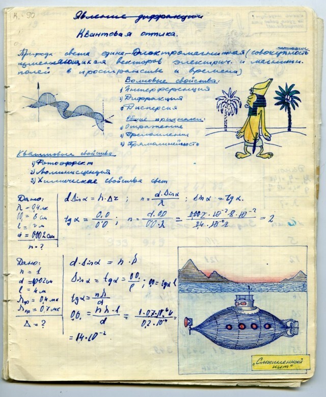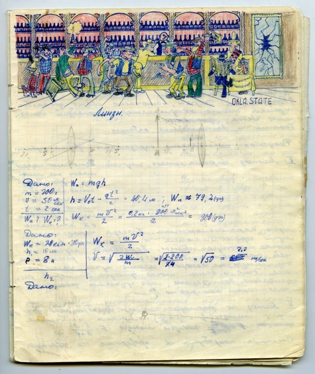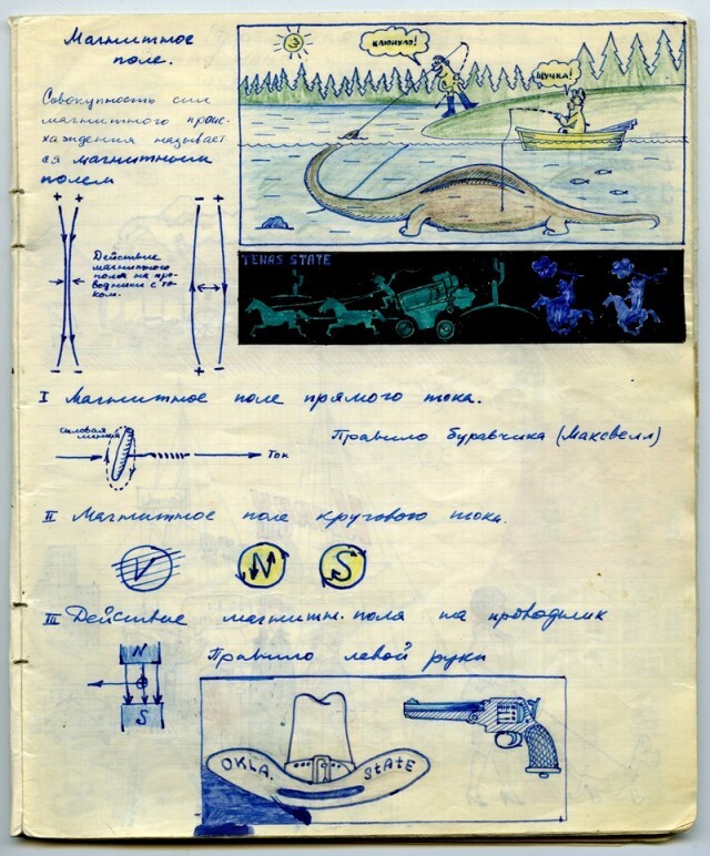 Наверное каждый из нас, будучи школьником, хоть раз да подрисовал в учебнике какому-нибудь усы. У меня в семье первое место по этому развлечению на уроках, принадлежит моему отцу. Был он человеком творческим, и разносторонним, и так сложилось что занесла его судьба в г. Черноголовку в Подмосковье, в школу с физико-математическим уклоном. Учебники он не портил (наверное), но на тетради отыгрался. Было это где-то в 1967-1969 г.