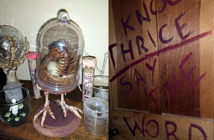 Затаившись в одном из узких проходов, я вдруг заметила странное свечение в одной из комнат. Подкравшись чуть ближе, я увидела висевший на стене шкаф из рубина, в котором находился золотой меч. Именно от него исходили золотистые лучи. Меч охраняли двое