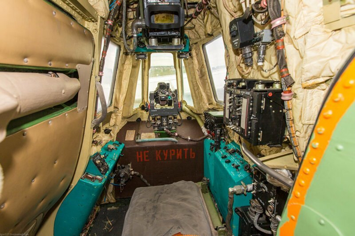 Сегодня хотелось бы поговорить о необычных условиях труда одного из членов экипажа всем известного отечественного военно-транспортного самолета Ил-76. Речь идет о старшем воздушном стрелке, чью кабину и вооружение вы часто могли видеть в самой корме летающего гиганта прямо под килем. У него, конечно, нет под рукой таких удобств, какие есть у остальных членов экипажа в носовой части самолета, однако и жаловаться грех, ведь в его распоряжении имеется собственная отдельная кабина. Итак, давайте обо всем по порядку... 1) Вход в кабину На фотографии выше можно заметить, что в районе кабины стрелка имеется своеобразная дверь , которая на самом деле является аварийным выходом. Вообще вход в кабину стрелка находится внутри самолета прямо над грузовой рампой (попасть туда можно только при закрытой рампе). Туда ведет небольшая вертикальная лестница, которая заканчивается герметичной дверью, отделяющей кабину стрелка от негерметичного отсека рампы. Отсек рампы является единственным местом в самолете, где отсутствует герметизация. Следовательно, стрелок не может покинуть свою кабину во время полета. Исключение - экстренные случаи, когда стрелок может покинуть кабину (предварительно разгерметизировав её) с использованием кислородной маски и кислородного баллона. Путь в кабину. Вдалеке виднеется лестница