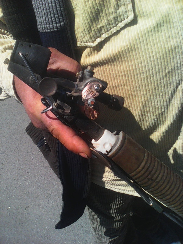 Дедушка радует новой тростью. В этот раз трость имеет резервуар для хранения коньяка и чехол для ножа. Сам нож пристегнут к трости не был по известным соображениям. Приготовлено место для компаса и часов. Но самое главное, по словам дедули, трость изготовлена из старого немецкого огнемета.