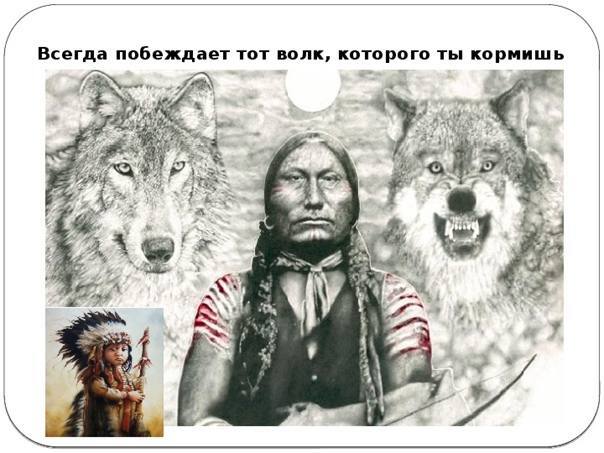 И вот в одной из книг я наткнулась на полную версию этой притчи, после громкого заявления про победу того кого кормишь, мудрый человек продолжает: