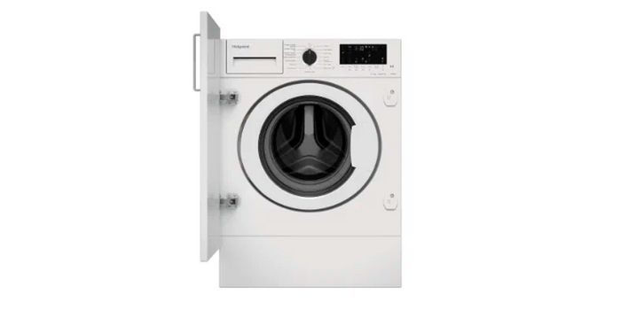 Следующий участник является лучшим представителем из категории встраиваемых машин. Hotpoint BI WDHT 8548 V оснащена инверторным двигателем, имеет функцию сушки, паровой обработки и позволяет добавлять забытое белье уже после запуска цикла.