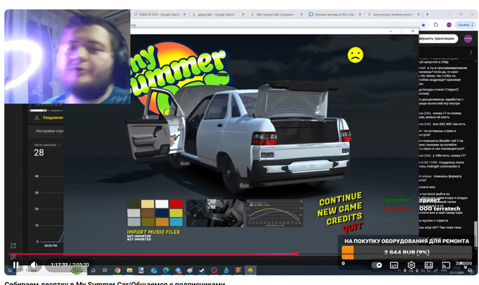 В октябре прошлого года я провел свой первый публичный стрим, где пил пиво, играл в My Summer Car и просто общался с зрителями. На пилотную трансляцию пришло аж 40 человек и я, будучи воодушевленный, думал что дальше будет только лучше. Следующий стрим откладывался целый год и вот, неделю назад я решил начать стримить чаще для укрепления коннекта с аудиторией.