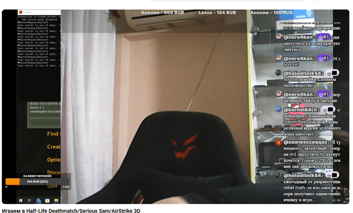 Вводные у меня не очень хорошие: смазливой внешности нет, я неряха, морально я фрик и долбаеб, зато у меня относительно подвешан язык. По крайней мере так я думал до сегодняшнего дня. Первый стрим за год набрал достойное число одновременных зрителей. В пике меня смотрело аж 46 человек, что очень даже неплохо для нонейма из интернета, который четверть стрима настраивал сервер в Quake 3. На стримах я старался поддерживать уютную атмосферу "скуфского" стрима из нижнего интернета, но без трешака. Иными словами просто общался с аудиторией не перегибая палку и на результаты первого стрима меня порадовали.