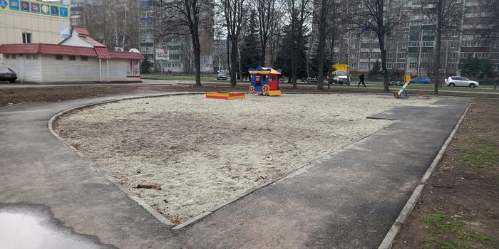 Многие жители микрорайона не понимают, зачем было ставить детский городок в нескольких метрах от спортплощадки.