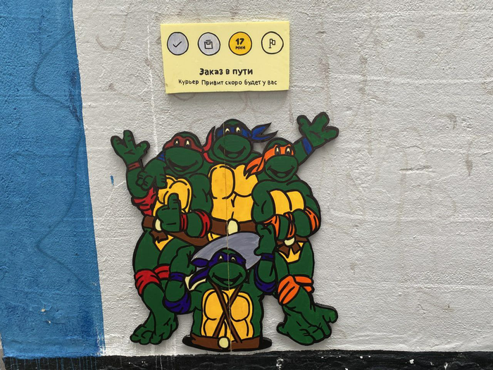 А сегодня во 2-ом Троицком переулке Москвы был замечен вот такой объемный стрит-арт с Черепашками-Ниндзя.